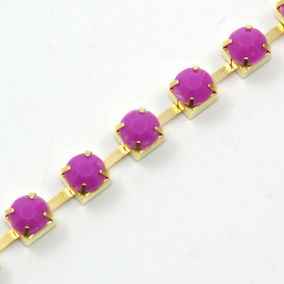 Brass Cup Chains, with Acrylic Rhinestone Beads, Golden Metal Color, Orchid or Pink Size: about 5mm wide, 4mm thick. 1 yard = 36 inches