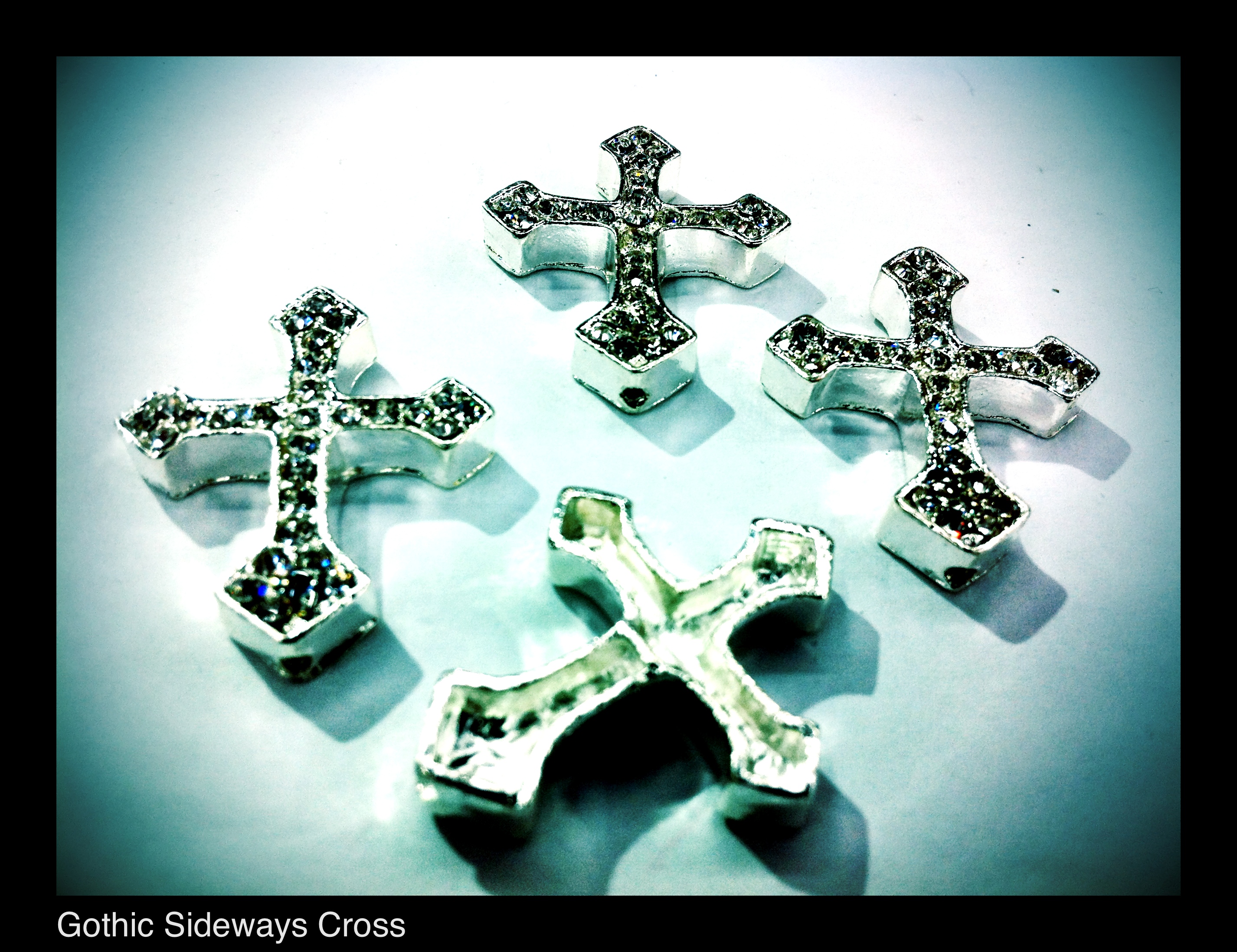 Gothic Sideways Cross. Bracelet Component. Plated alloy with Rhinestones. 35mm. *price is per piece*