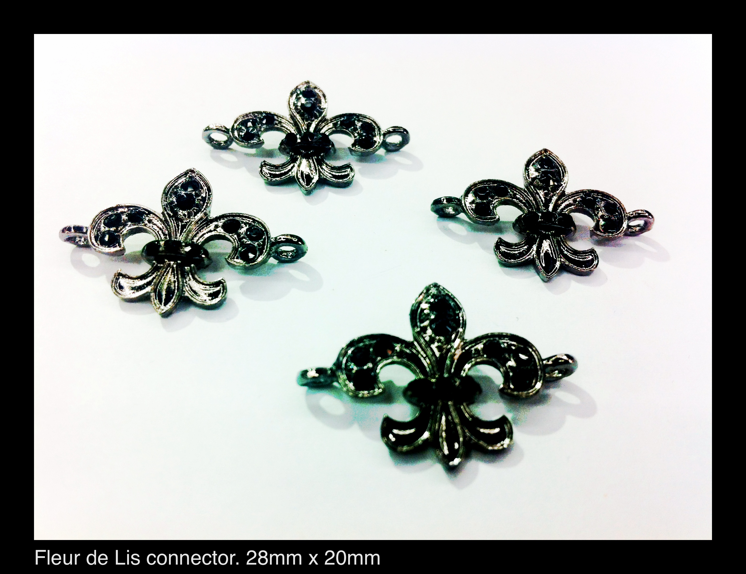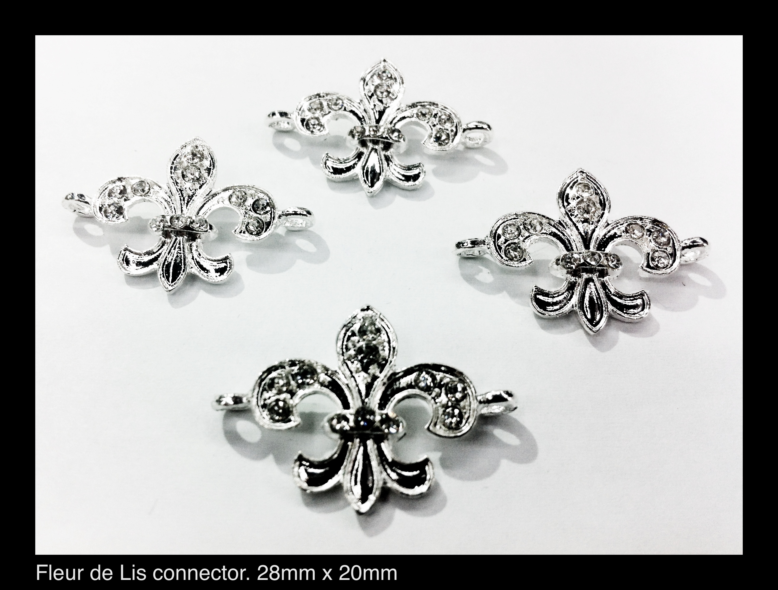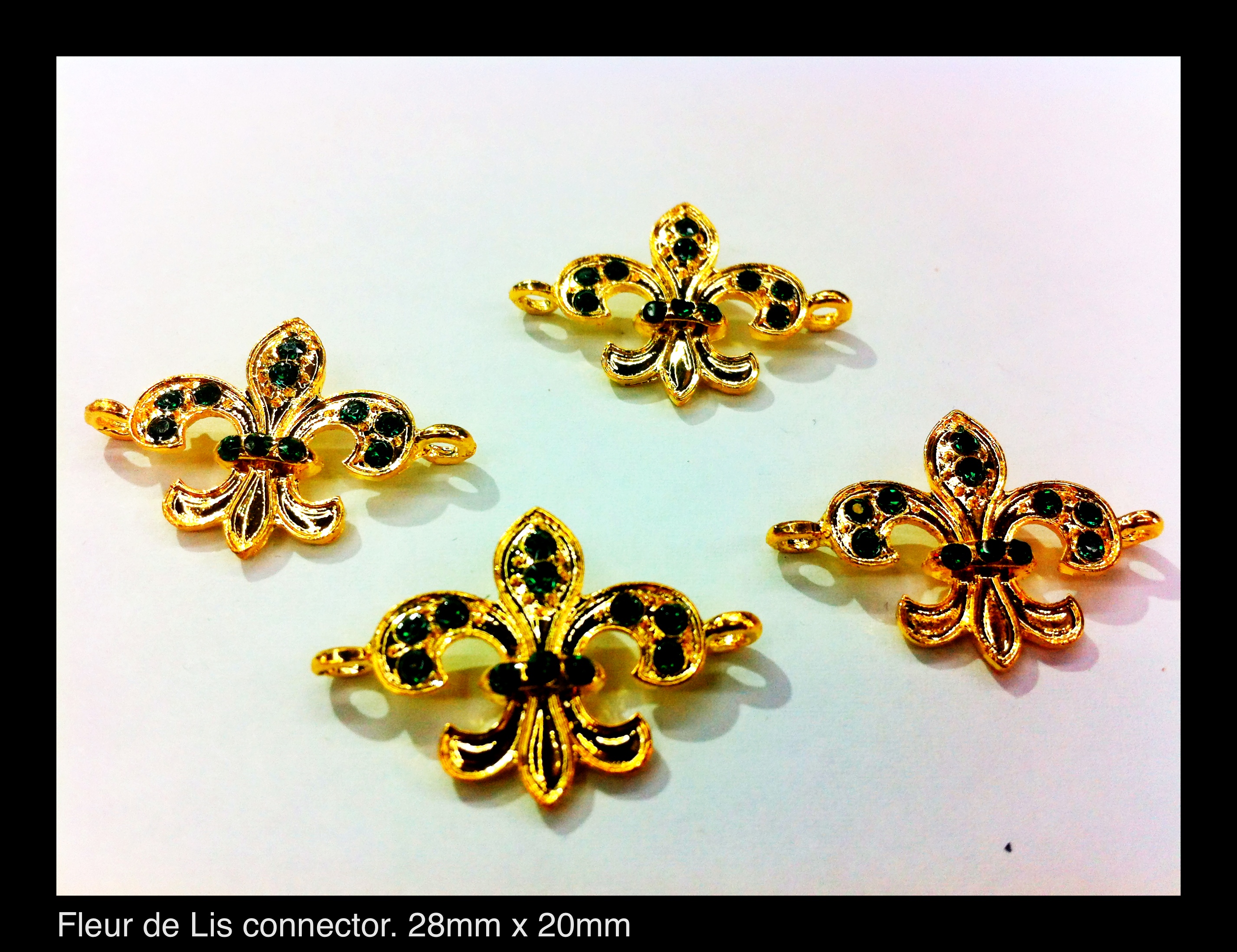 Fleur de Lis connector. 28mm x 20mm encrusted with emerald green rhinestones. *price is per peice*