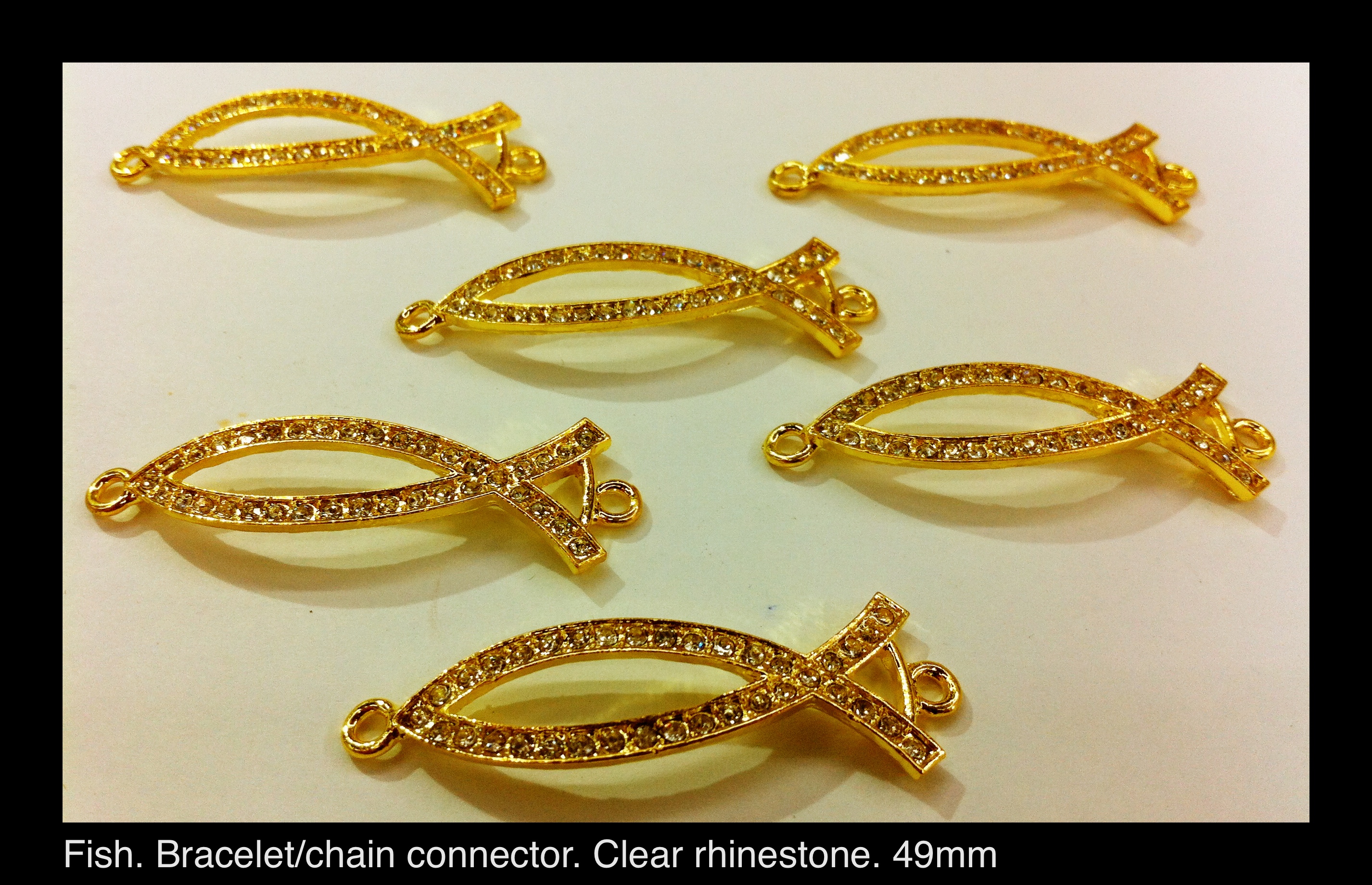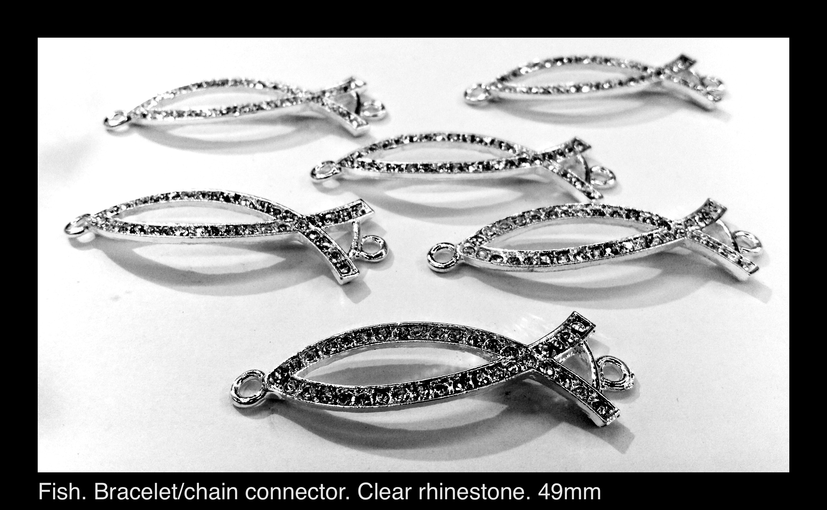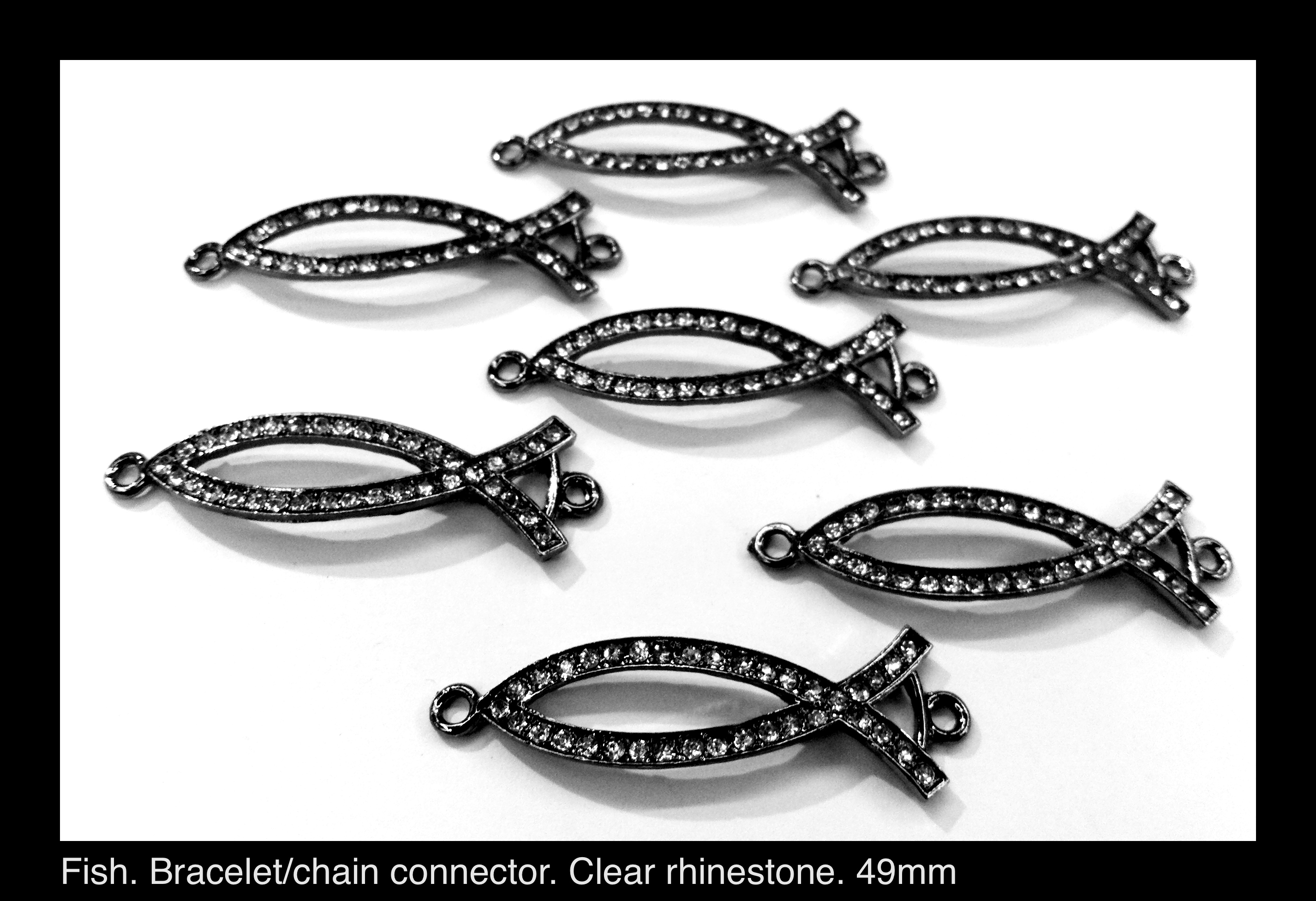 Fish. Bracelet connector.49mm. Rhinestone encrusted plated metal. *6pc package* PLEASE NOTE: for "MIX" a default mix of colors are sent unless noted otherwise.
