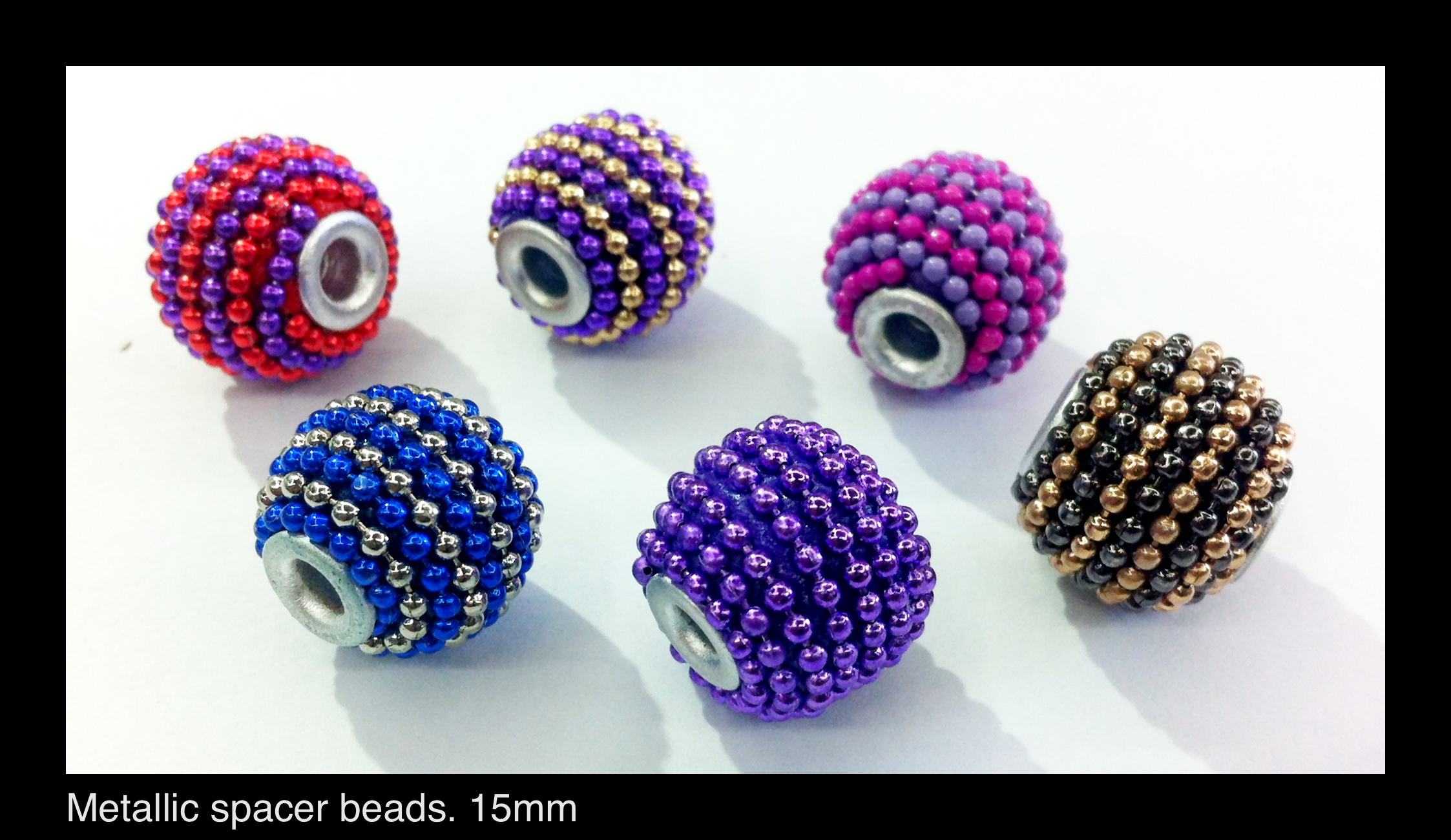 Metallic spacer beads. 15mm. comes 6pcs to the pack.