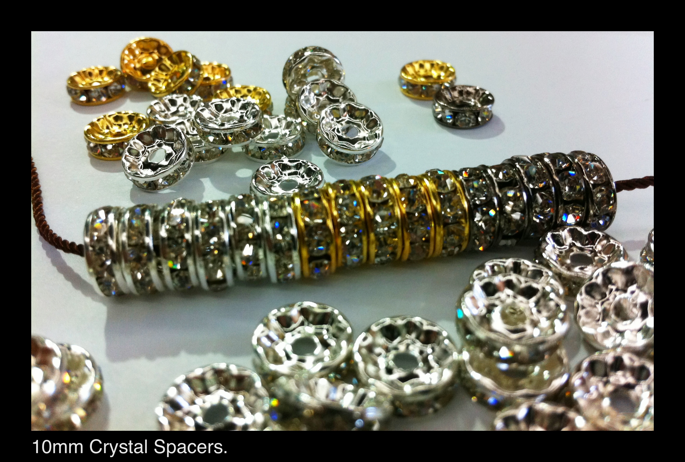 10mm Crystal Spacers. 12pcs.Clear Crystal encrusted in gold, silver and gunmetal plating. This is a pack of 12pcs.