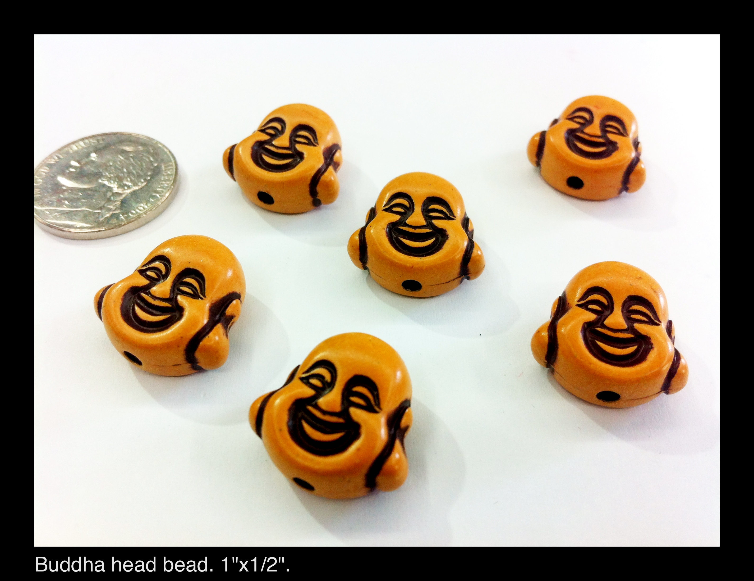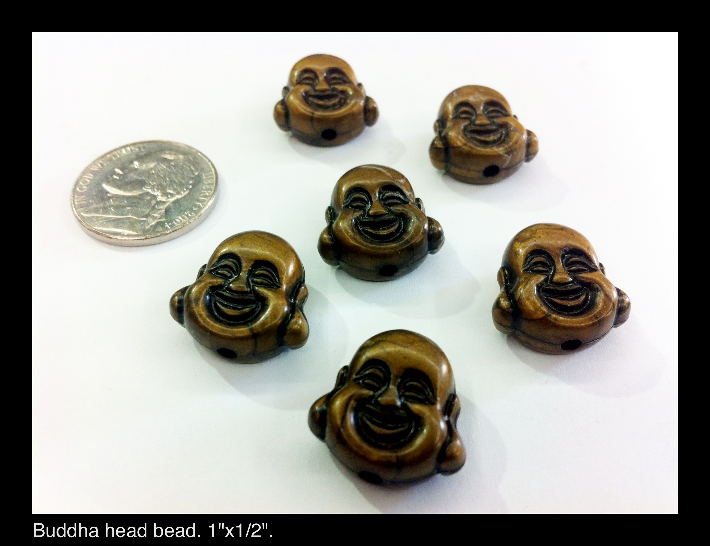Resin Buddha Head bead. 1" x 1/2" . Double sided. Sold per piece.