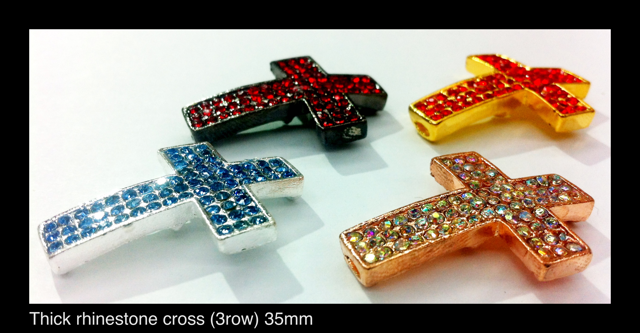 Thick Rhinestone Cross.3 rows of encrusted rhinestone on a plated metal alloy. 40mm. sold per piece*