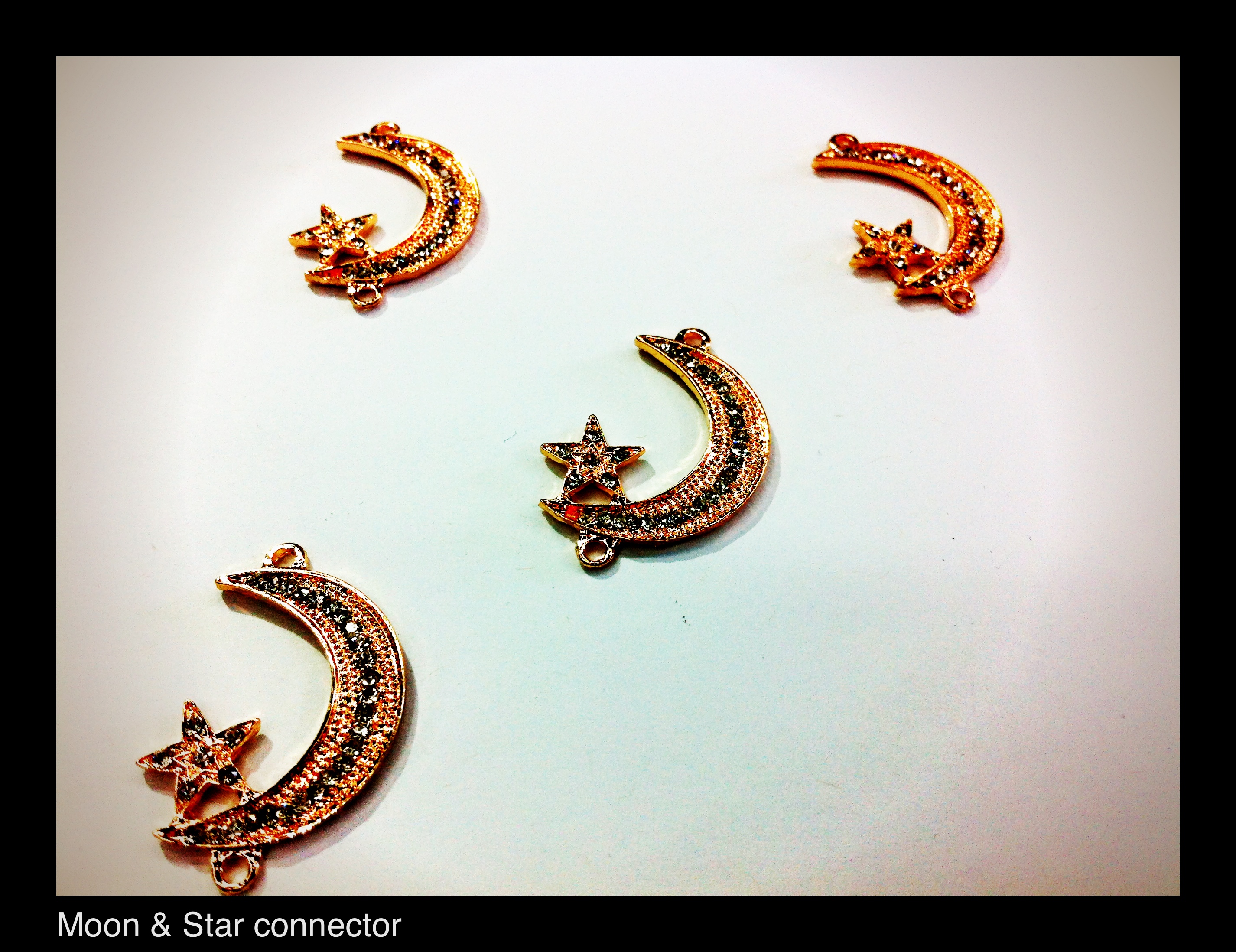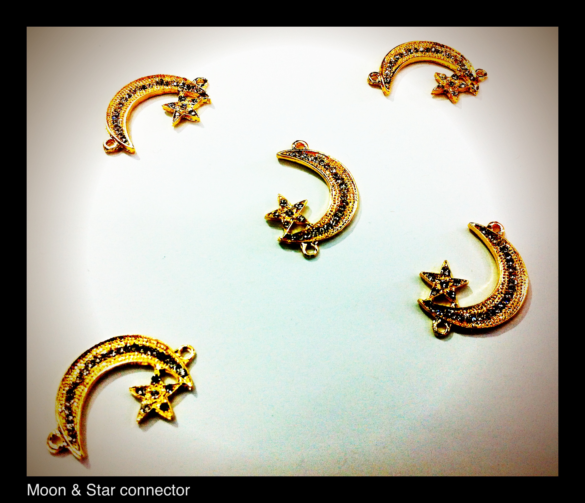 Moon and Star connector. 40mm. Clear rhinestones on plated alloy. Bracelet Component. *price is per piece*