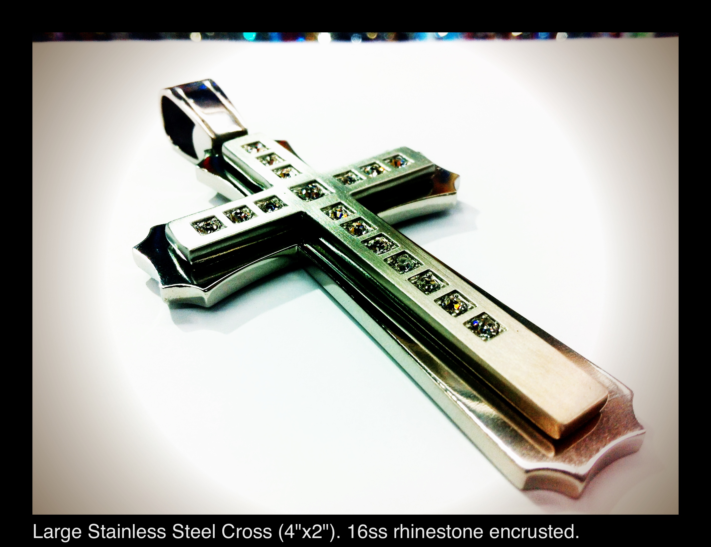 Large 4"x 2" 16ss rhinestone Double cross. Stainless Steel.