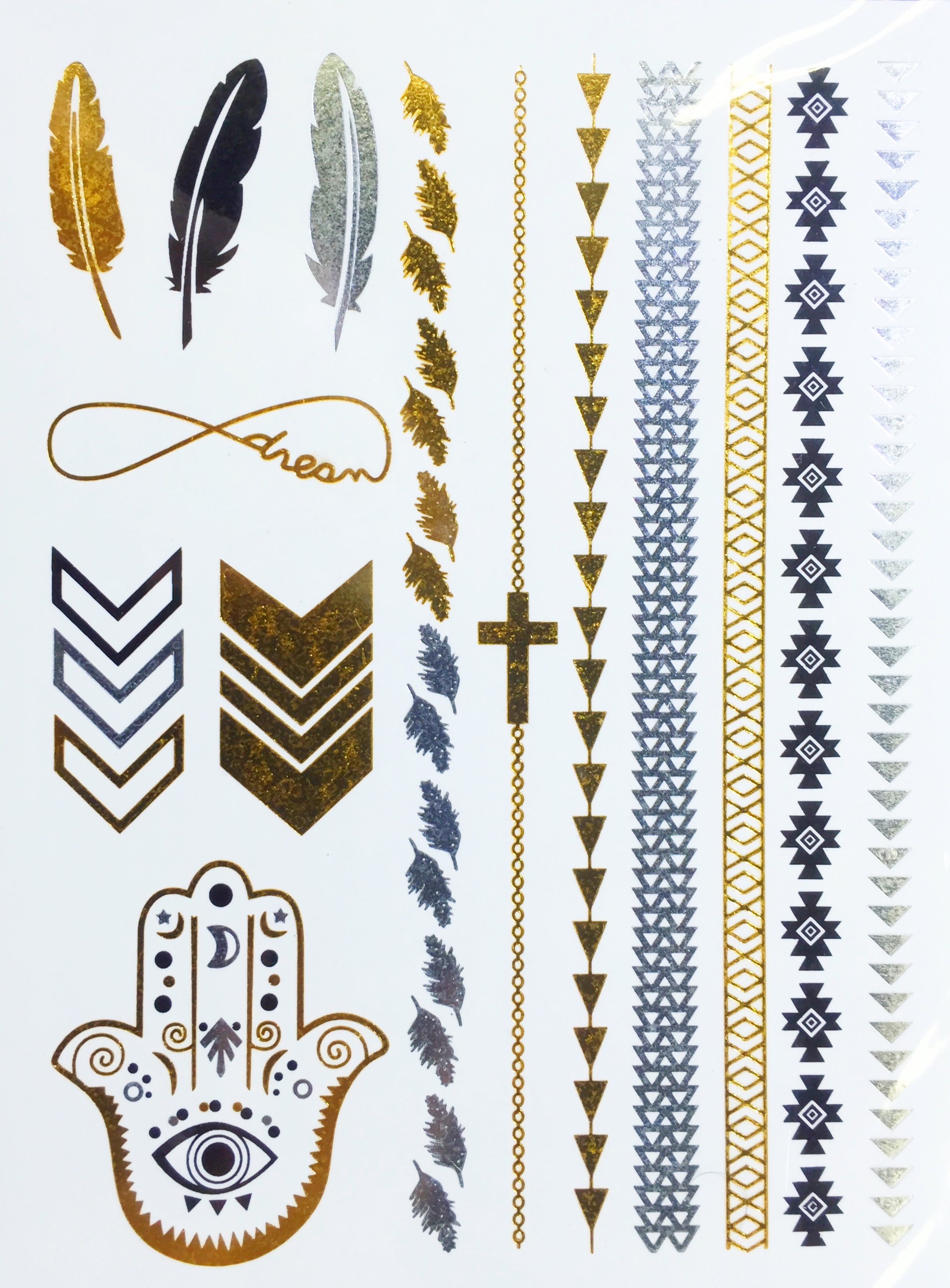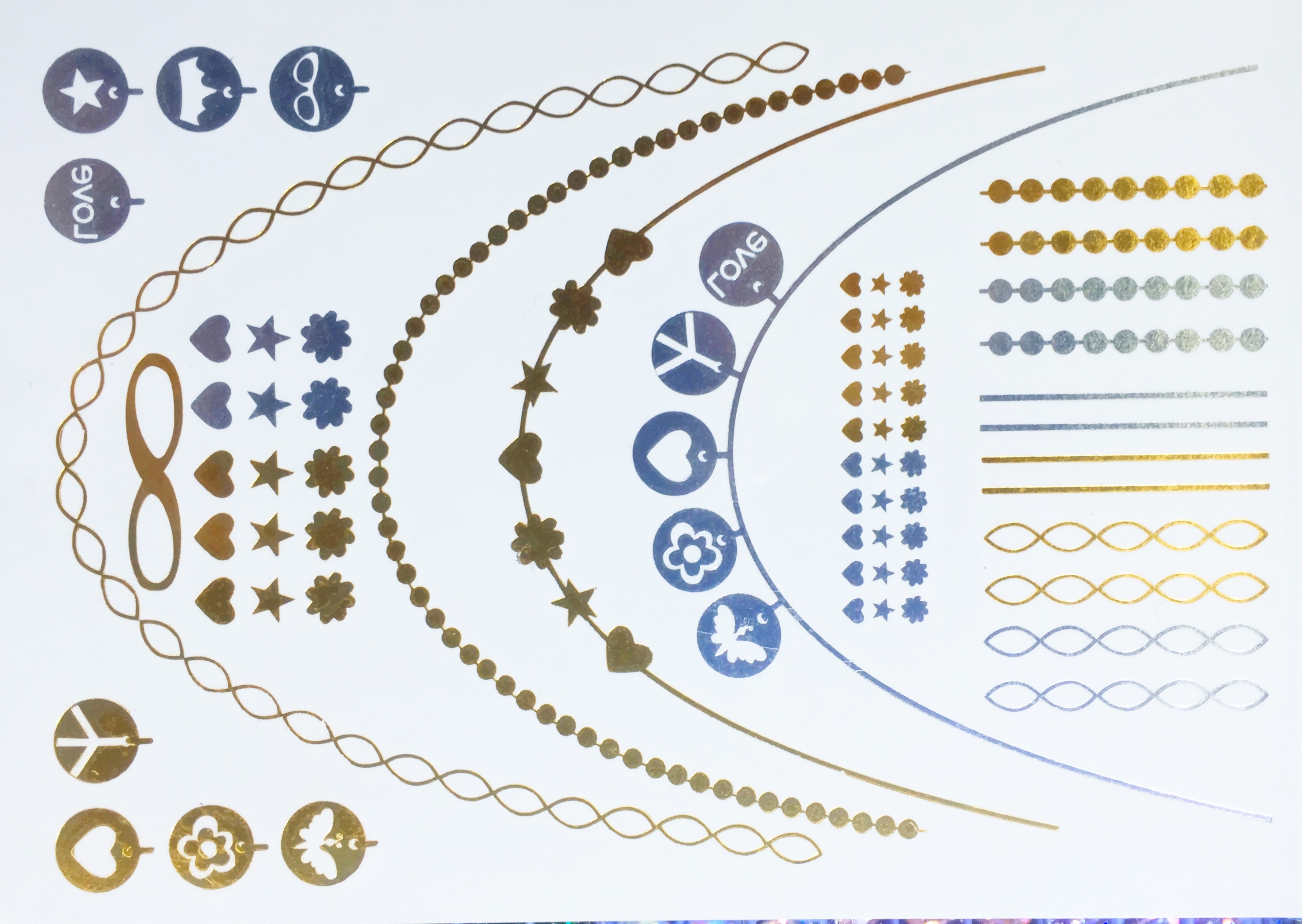 Temporary Tattoo that lasts for 2-3 weeks. 100% safe on skin contact. Easy to apply. Just cut around desired design. Peel off the plastic film. Then, place over desired body area and pad down with a moist paper towel until cardboard backing is damp. Finally, pull off the card slowly leaving the tattoo on your skin.