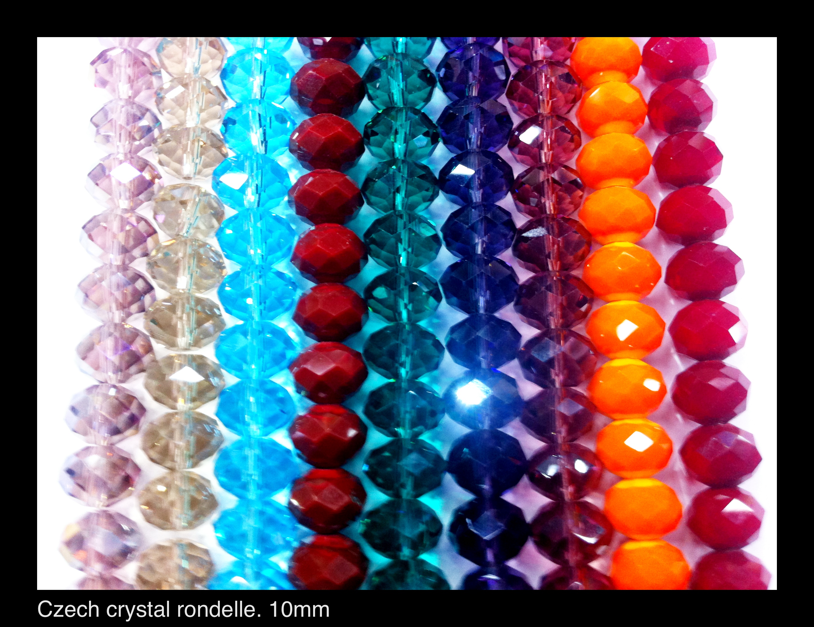 Czech Crystal rondelles. 10mm rondelle shape. sold by the strand. Strands come with approx. 37 pcs to the strand depending on the finish. (PLEASE NOTE: please refer to the picture and locate your preferred color from left to right)
