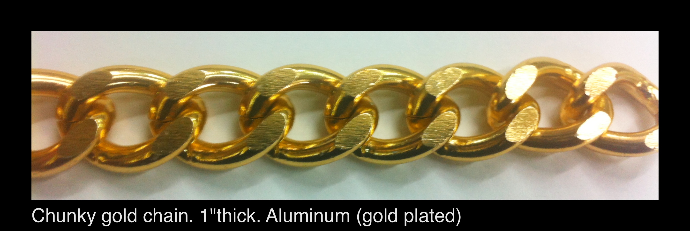 Chunky Chain. 1" thick. Aluminum base with gold plated, silver plated or Black plated finish. Lightweight. Perfect for chunky chain bracelets. Sold per Foot (12 inches). Gold, silver and black colors available.