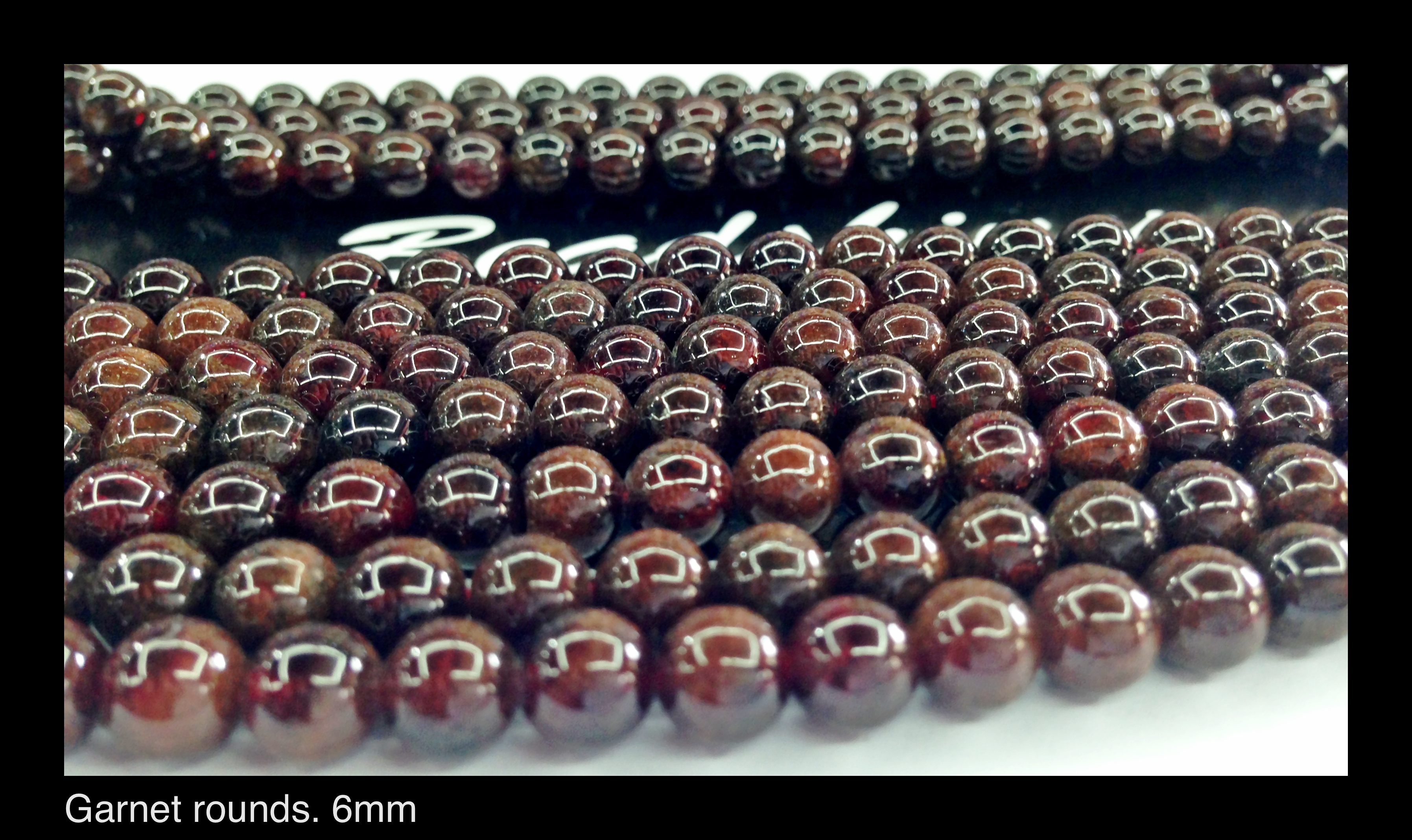 Red Garnet. Deep Burgundy color. 15.5" strand with approx. 66pcs. Each bead measures 6mm. This stone represents love. Red Garnet controls anger, especially toward the self.