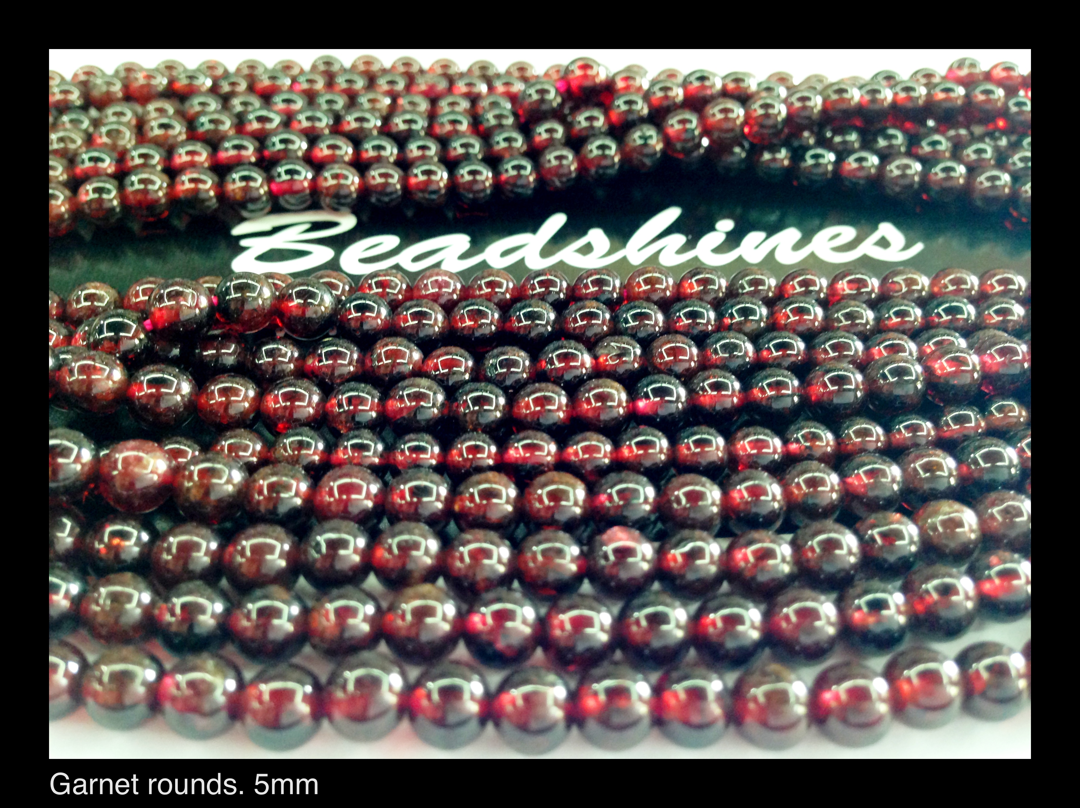 Red Garnet. Deep Burgundy color. 15.5" strand with approx. 83pcs. Each bead measures 5mm. This stone represents love. Red Garnet controls anger, especially toward the self.